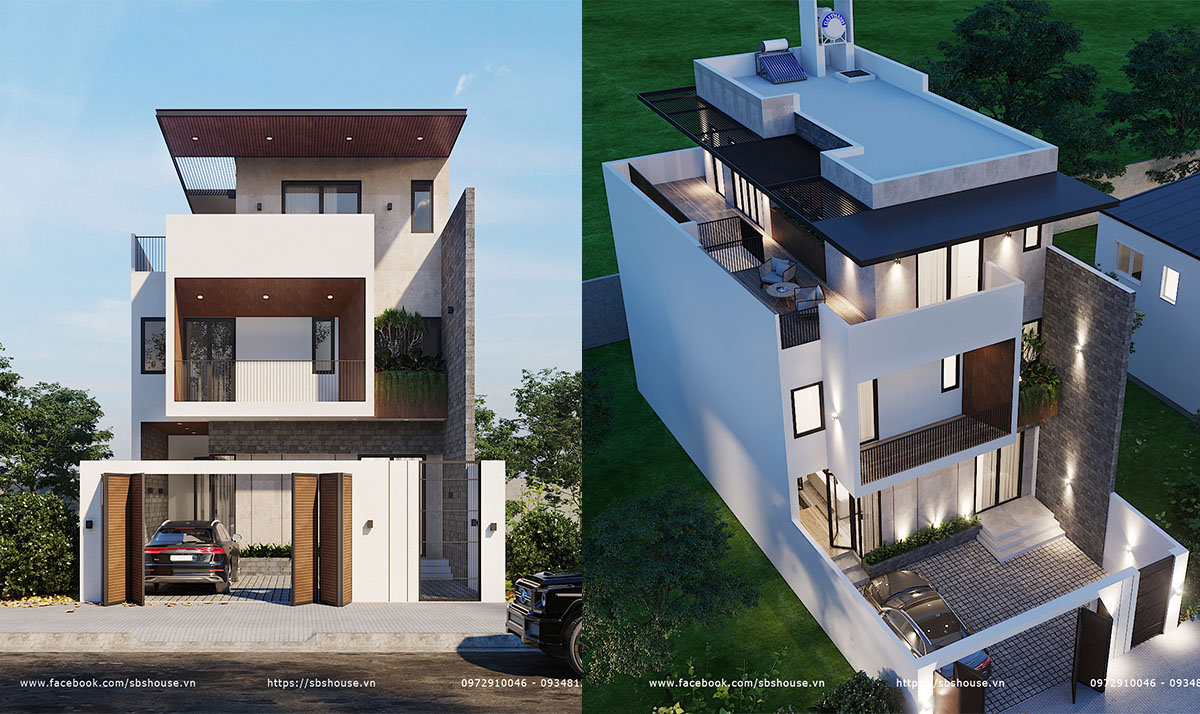 Tổng hợp 55+ mẫu nhà 3 tầng đẹp, hiện đại và thông thoáng được SBS HOUSE thiết kế và thi công. Mẫu nhà 3 tầng thiết kế theo phong cách hiện đại, những đường nét thẳng tạo nên những hình khối vuông vức tạo sự vững chắc cho ngôi nhà. Sử dụng những vật liệu hiện đại như gỗ conwood, hệ lam cắt CNC che nắng mặt tiền. Ngoài ra, hệ cây xanh ban công còn giúp cho ngôi nhà được mát mẻ và tăng thêm tính thẩm mỹ.