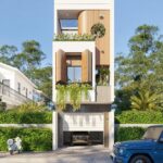Nơi góc ban công còn được điểm xuyết bởi mảng xanh mát. Tầng 1: Sân ô tô, phòng khách, phòng ăn+bếp, 01 WC