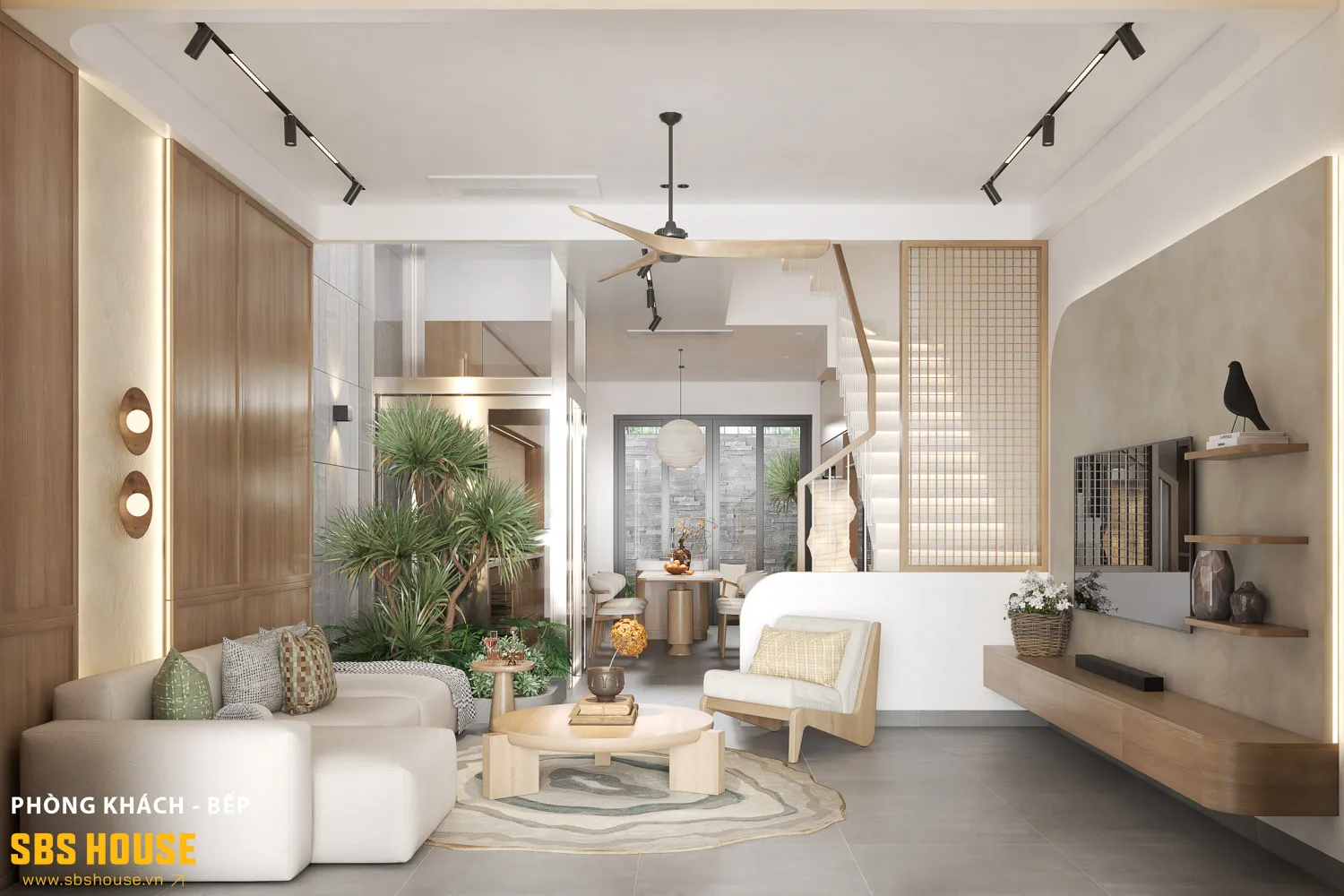 Chính sự kết hợp giữa ánh sáng, gió và các điểm xanh nhỏ đã tạo nên một không gian sống hiện đại, nhẹ nhàng và “thở được”, tinh thần mà SBS HOUSE luôn theo đuổi trong thiết kế nhà phố.
