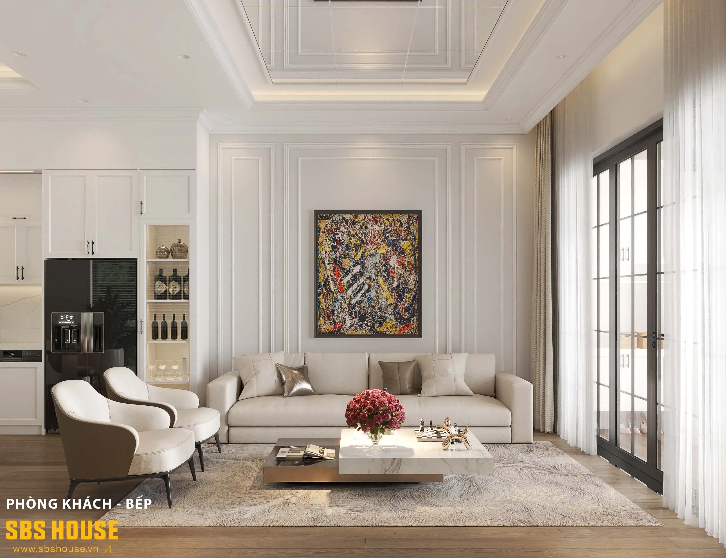 Giữa không gian nên thơ của thành phố ngàn hoa, T’s House mang đến một nét chấm phá tinh tế của phong cách Neo Classic. Một dấu ấn sang trọng nhưng không xa cách, hiện đại mà vẫn giữ được sự ấm áp rất riêng. Mỗi chi tiết trong ngôi nhà là kết quả của hành trình lắng nghe và thấu hiểu giữa đội ngũ SBS HOUSE và gia chủ – nơi những mong muốn, cảm xúc và thói quen sống được chuyển hóa thành không gian vừa vặn với từng nhịp sống thường ngày.