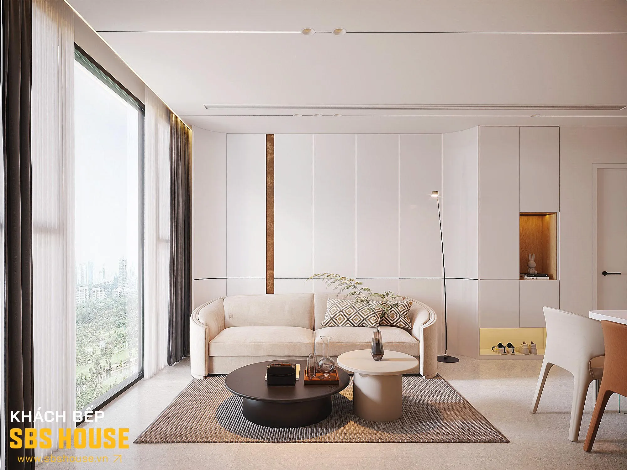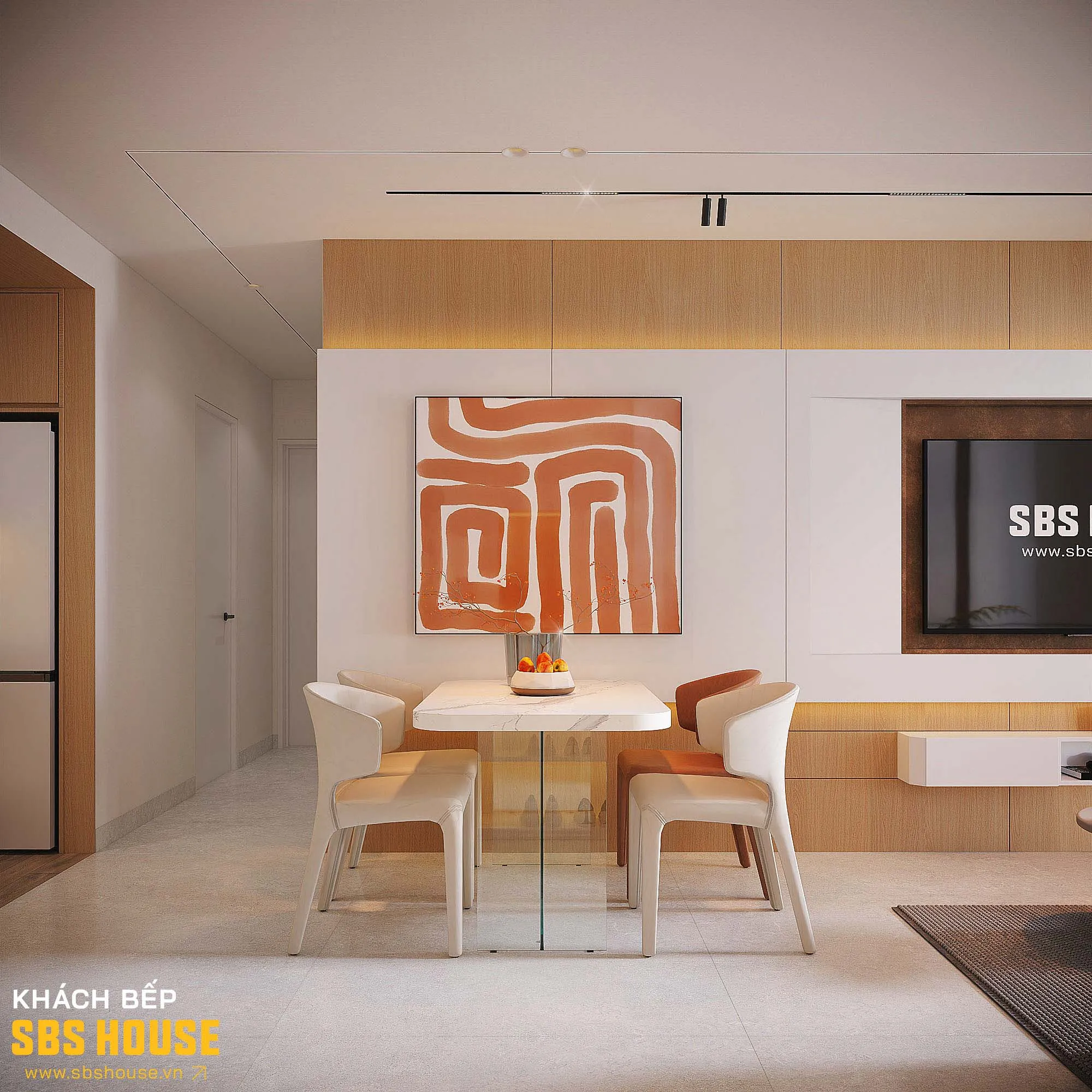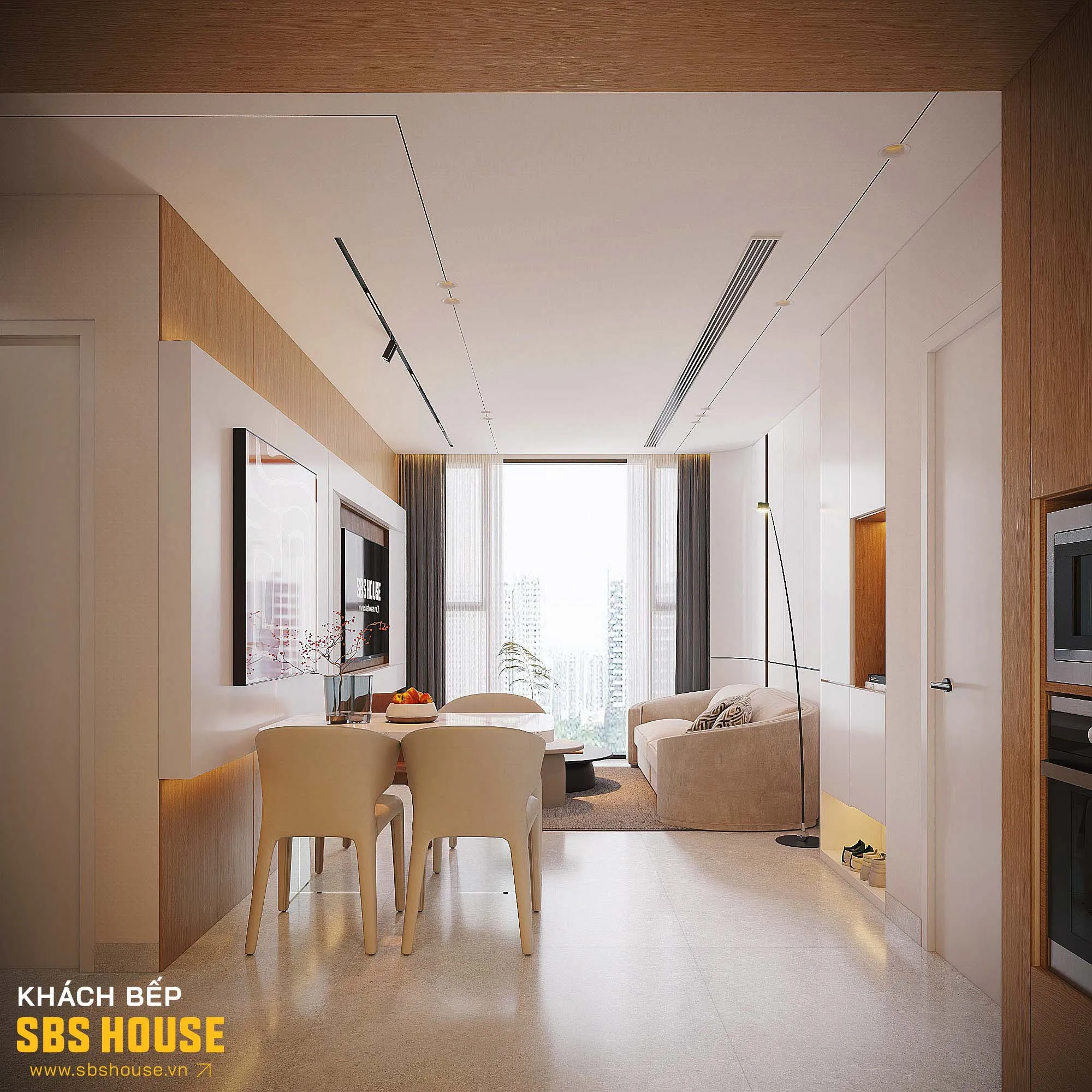 Bố trí nội thất khoa học giúp ánh sáng lan tỏa đều trong căn hộVới mỗi dự án căn hộ, SBS HOUSE không chỉ dừng lại ở việc tạo ra một không gian đẹp, mà còn hướng đến trải nghiệm sống lâu dài và giá trị sử dụng thực tế cho gia chủ. Căn hộ Risemount này là một ứng dụng thực tế của triết lý thiết kế đó: tinh giản nhưng không đơn điệu, hiện đại nhưng vẫn ấm áp và giàu cảm xúc.