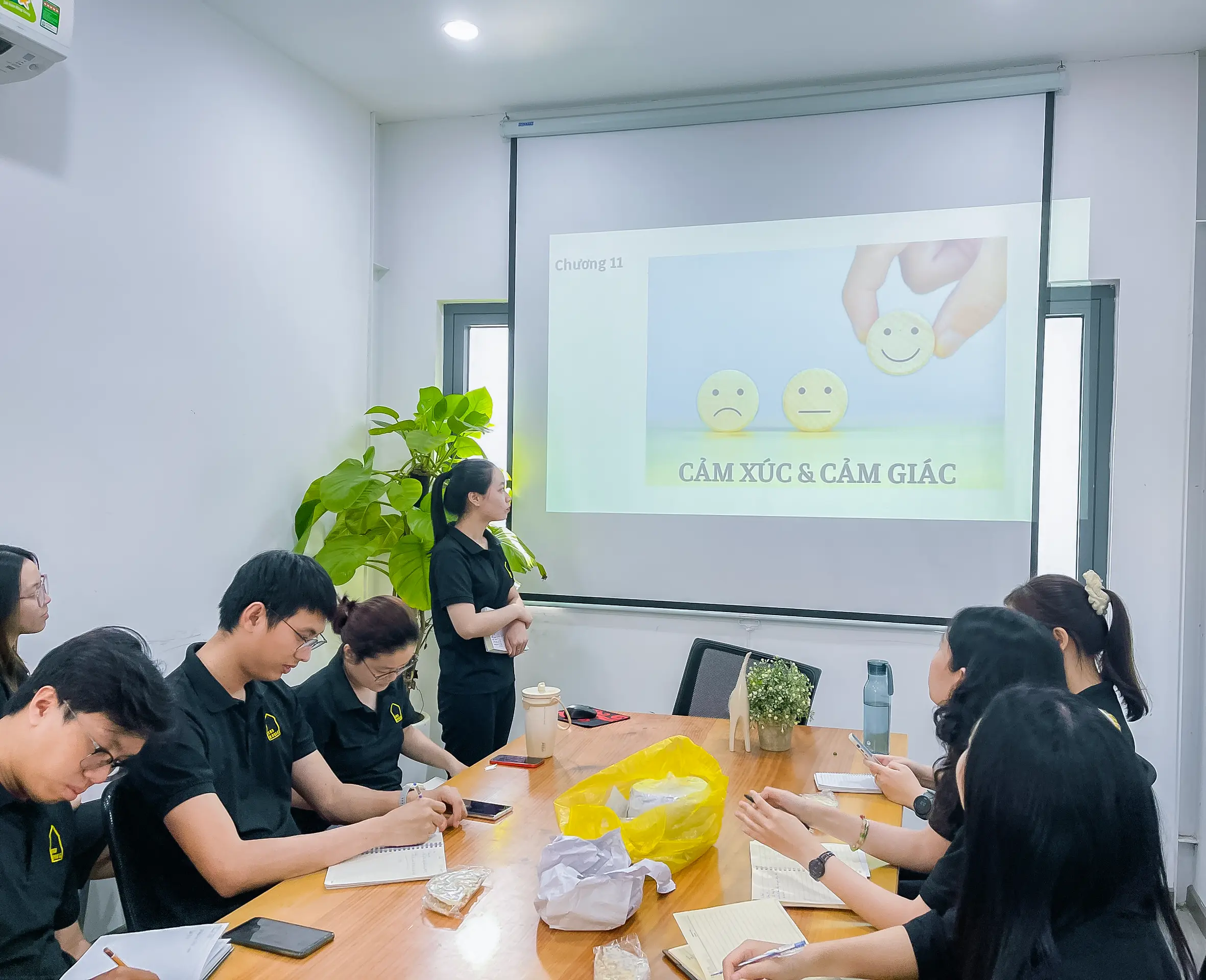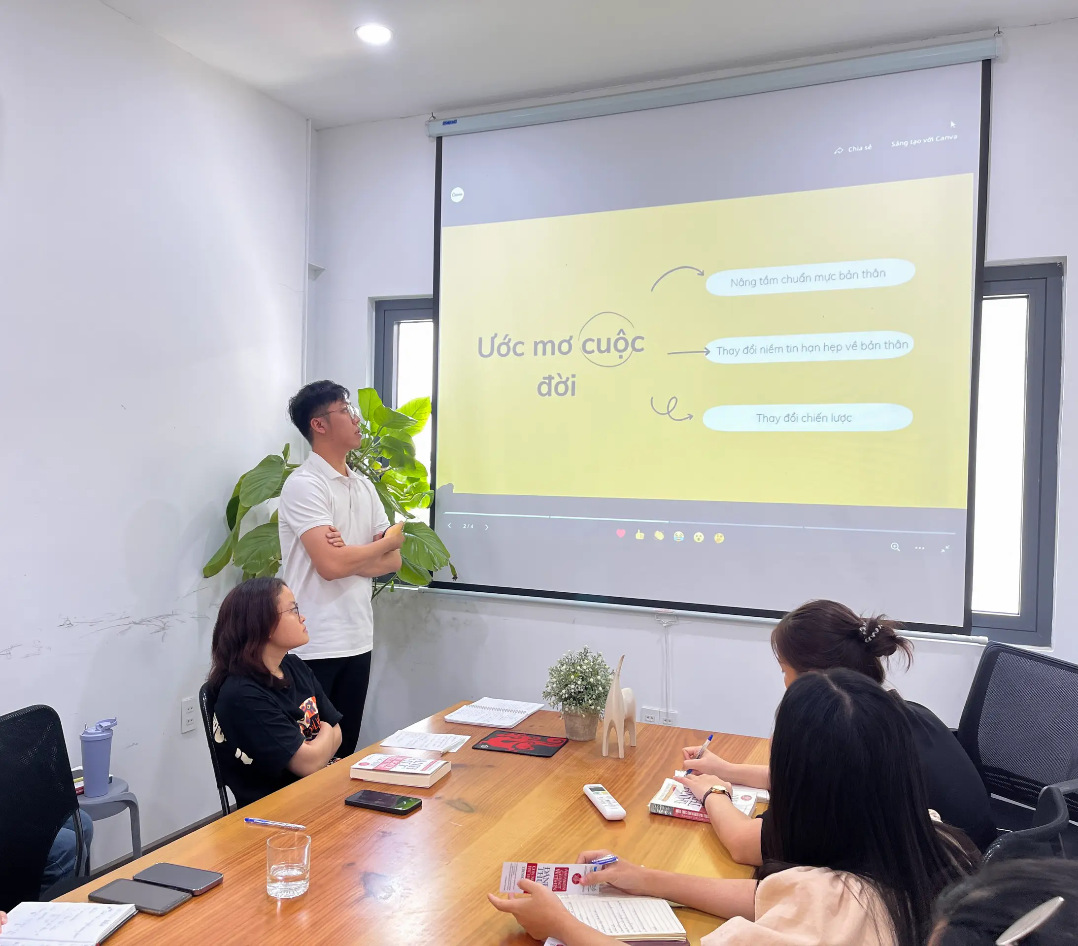 Là thành viên nhỏ tuổi nhất, Hoài Khanh cũng mang đến nội dung thú vị để chia sẻ với các anh chị trong phòng. Với 4 bài học được đúc kết được, kết hợp với những trải nghiệm bản thân, Khanh đã có phần chia sẻ thú vị và bổ ích về động lực sướng – khổ, làm chủ cảm xúc bản thân.