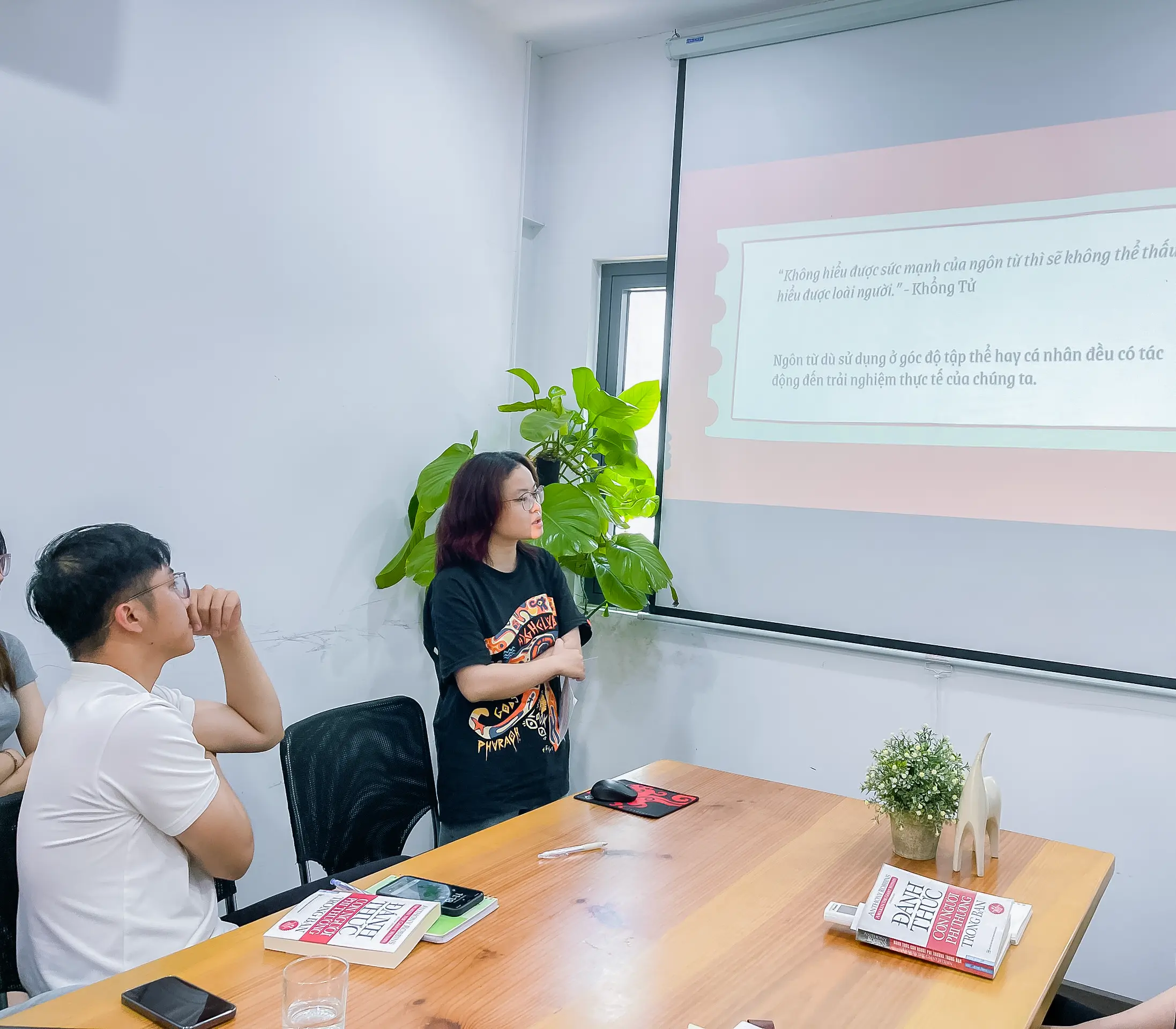 Sức mạnh của ngôn từ là chương được Trang lựa chọn báo cáo, với cách truyền tải thú vị, kết hợp những trải nghiệm bản thân Trang đã giúp các thành viên hiểu hơn về những từ ngữ tác động cảm xúc, và cách chúng ta sử dụng nó trong cuộc sống như thế nào.